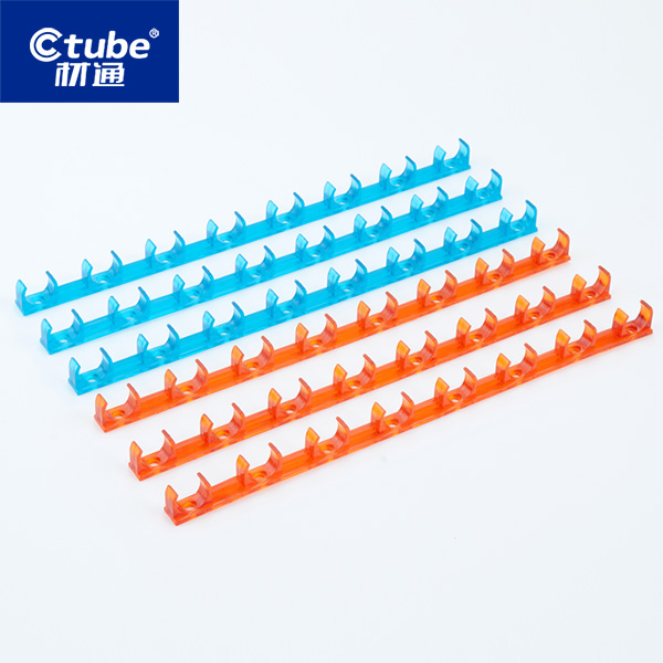 紅藍(lán)透明PVC地面連排管夾簡介: