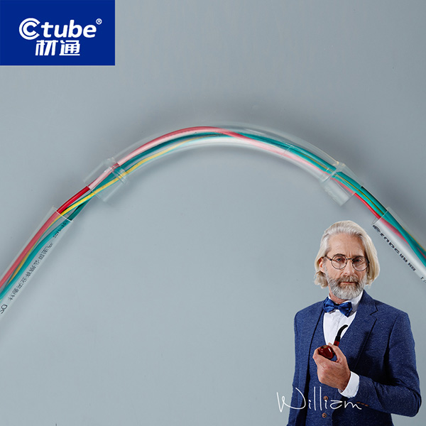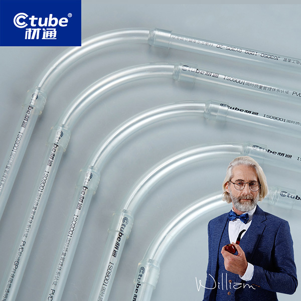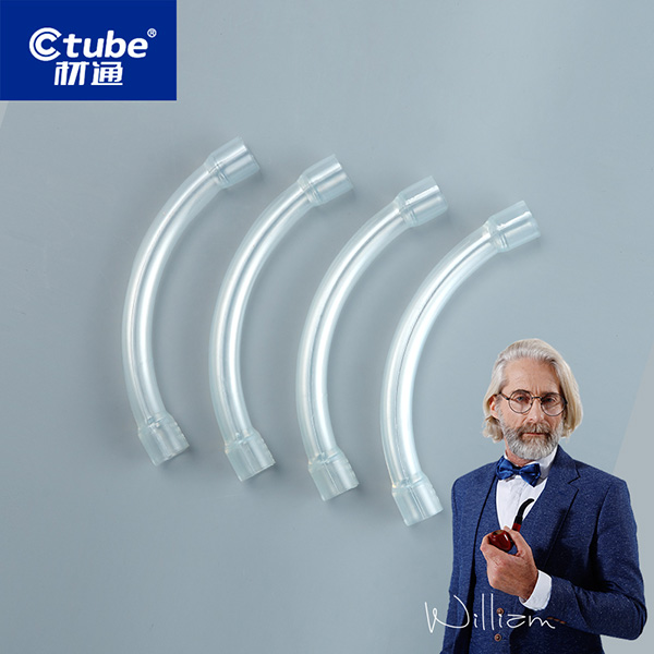 透明PVC90度大彎頭簡介:應(yīng)用于“全工地活線 無需人彎管”施工工藝,線管90度轉(zhuǎn)彎時(shí),取代傳統(tǒng)的90度直角小彎頭,使用90度大彎頭,顛覆傳統(tǒng)人工彎管,它弧度大,無死角,拉動容易